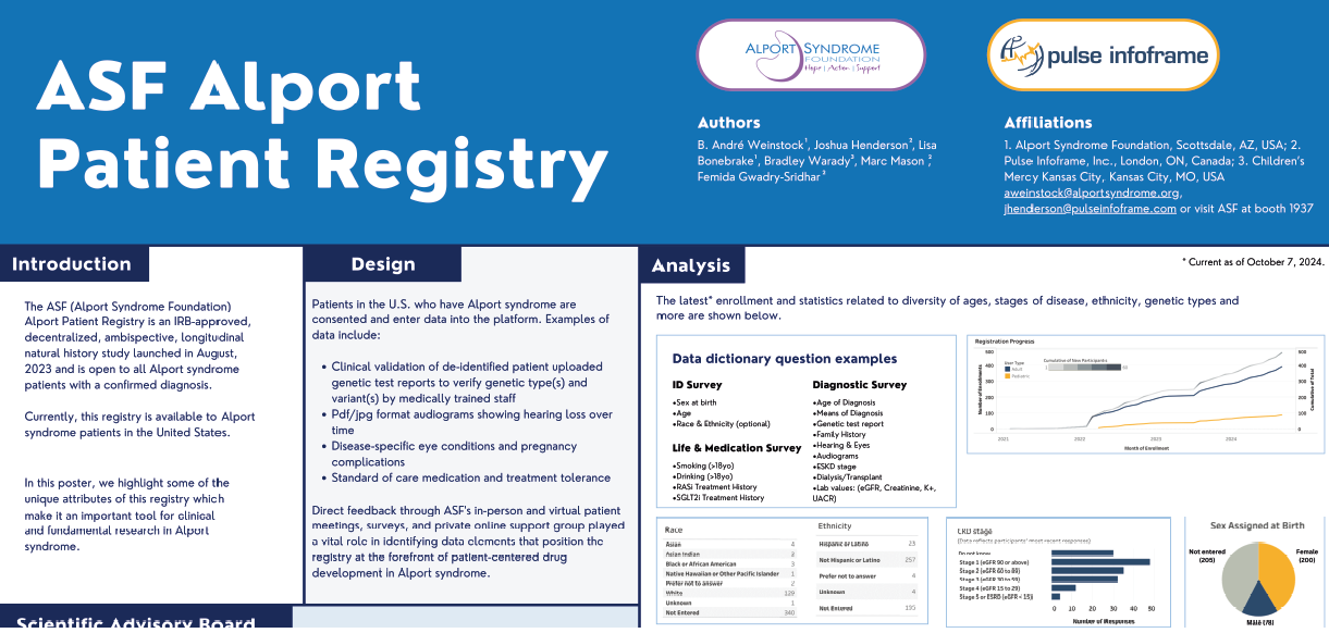 Read about the Alport Patient Registry which is an IRB approved, decentralized, ambispective, longitudinal natural history study launched in August 2023. Presented at the 2025 American Society of Nephrology Kidney Week